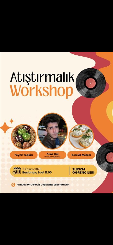 Otel, Lokanta ve İkram Hizmetleri Bölümümüzün başarılı mezunlarından Cenk Gül, öğrencilerimize yönelik uygulamalı workshop gerçekleştirilecektir.