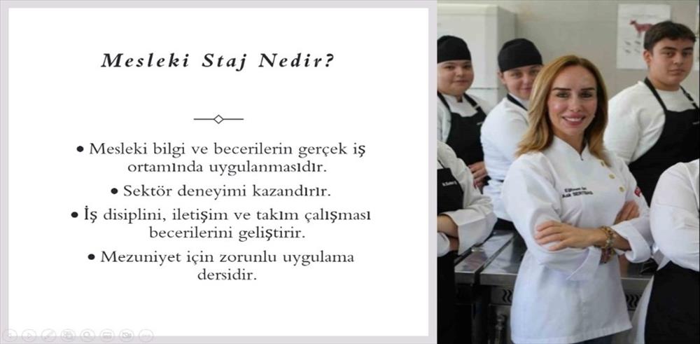 Ayrıca öğrencilerin staj sürecinde karşılaşabilecekleri olası durumlar ele alınarak çözüm önerileri paylaşılmış, öğrencilerden gelen sorular yanıtlanarak sürece ilişkin farkındalık artırılmıştır.