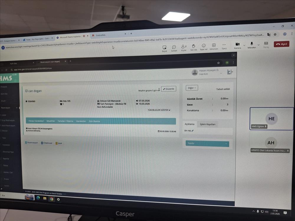 Otelcilik sektöründe dijitalleşmenin ve otomasyon sistemlerinin giderek daha fazla önem kazandığı günümüzde, mesleki eğitim programları da bu dönüşüme uyum sağlayacak şekilde güncellenmektedir. Bu kapsamda 02 Mart 2026 tarihinde, Otelcilik Otomasyon Sistemleri ders içi eğitim kapsamında Online HMS Otel Otomasyon Programı Eğitimi gerçekleştirildi.
